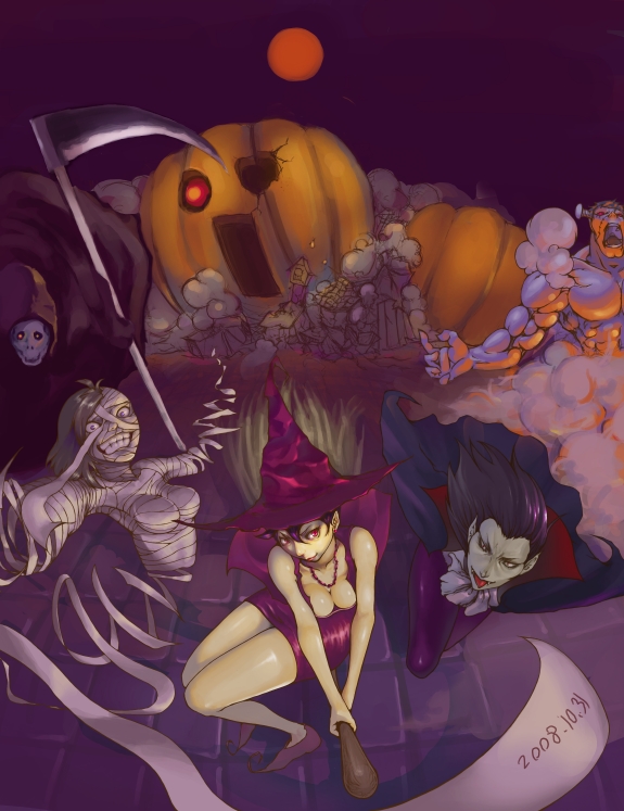 ハロウィンキャラをふんだんに盛り込んだ豪華な一枚。